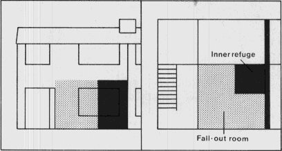 Still greater protection is necessary in the fall-out room (or lounge bar), particularly for the first two days and nights after an attack, when the radiation dangers could be critical. To provide this you should build an inner refuge (or snug). This too should be thick-lined with dense materials to resist the radiation, and should be built away from the outside walls.